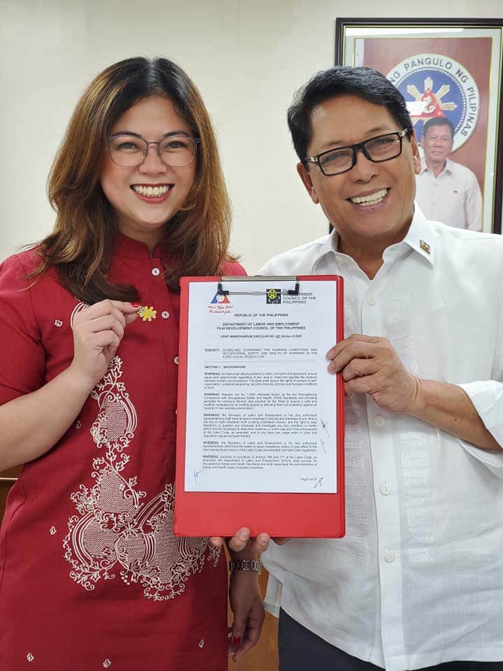 Isa sa mga in-announce niya ay ang joint memorandum circular ng Department of Labor and Employment at FDCP, na kung saan nagkaroon na ng guidelines na susundin ng mga producer para sa proteksyon ng mga audio-visual workers.