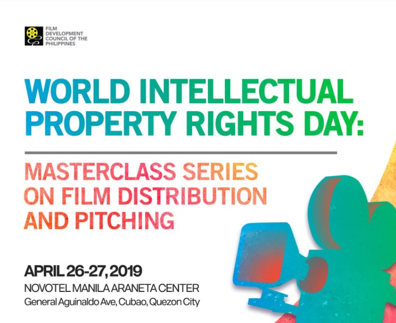 The Film Development Council of the Philippines (FDCP) celebrates this year’s World Intellectual Property Day by conducting a lecture series on Film Distribution, Intellectual Property Rights and Pitching Essentials from April 26 to April 27, 2019 at Novotel Manila Araneta Center in Cubao, Quezon City. This event is made possible in partnership with the Motion Picture Association (MPA) supported by the Department of Trade and Industry-Expert Marketing Bureau (DTI-EMB) and the Intellectual Property Office of the Philippines (IPOPHL).