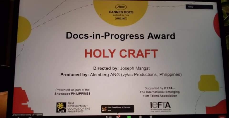 “Holy Craft,” directed by Mangat and produced by Alemberg Ang of vy/ac Productions, bagged the Docs-in-Progress Award out of 32 documentary projects from eight countries. The “Holy Craft” team received a cash prize worth 10,000 euros and a professional long-term project follow-up that will be supported by the International Emerging Film Talent Association (IEFTA).